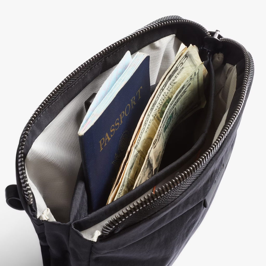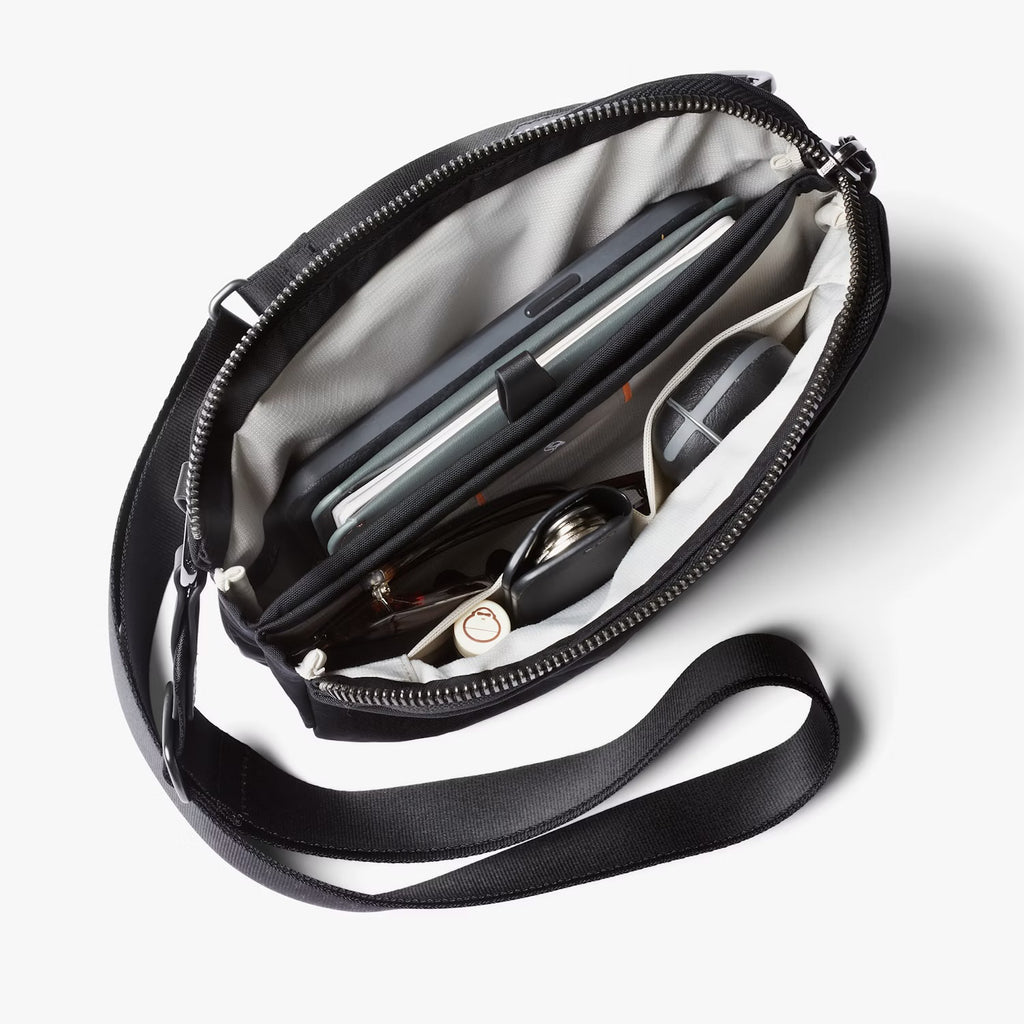 This professional-looking sidekick holds more, and organizes it better, than its sleek profile would have you believe. Features Expandable capacity Discreet rear zip pocket Wide mouth access Padded internal divider Central peep pocket Stretch mesh slip pockets Adjustable, detachable shoulder straps Premium leather accents Custom metal hardware Strap length: min...