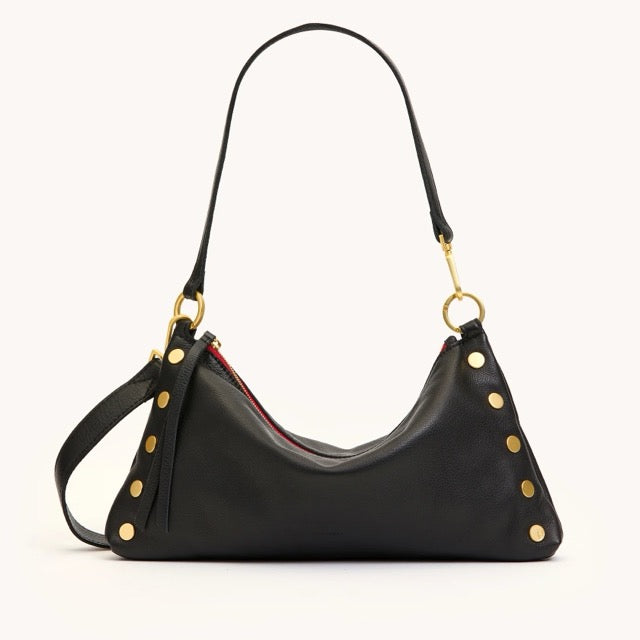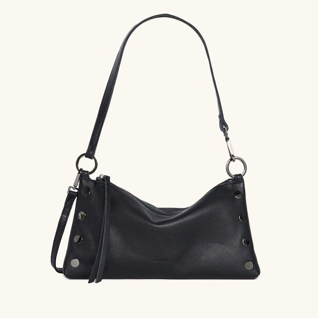 This fresh, of-the-moment bag is a must-have companion for nights on the town. Featuring a slouchy but current shape, crafted with our classic black pebbled leather, this versatile little number transitions from a wristlet to a shoulder bag in seconds flat. The Kyle also includes a removable and adjustable crossbody strap, so it's easy to go hands-free. Wear Kyle three ways, including as a crossbody bag, shoulder bag or wristlet.