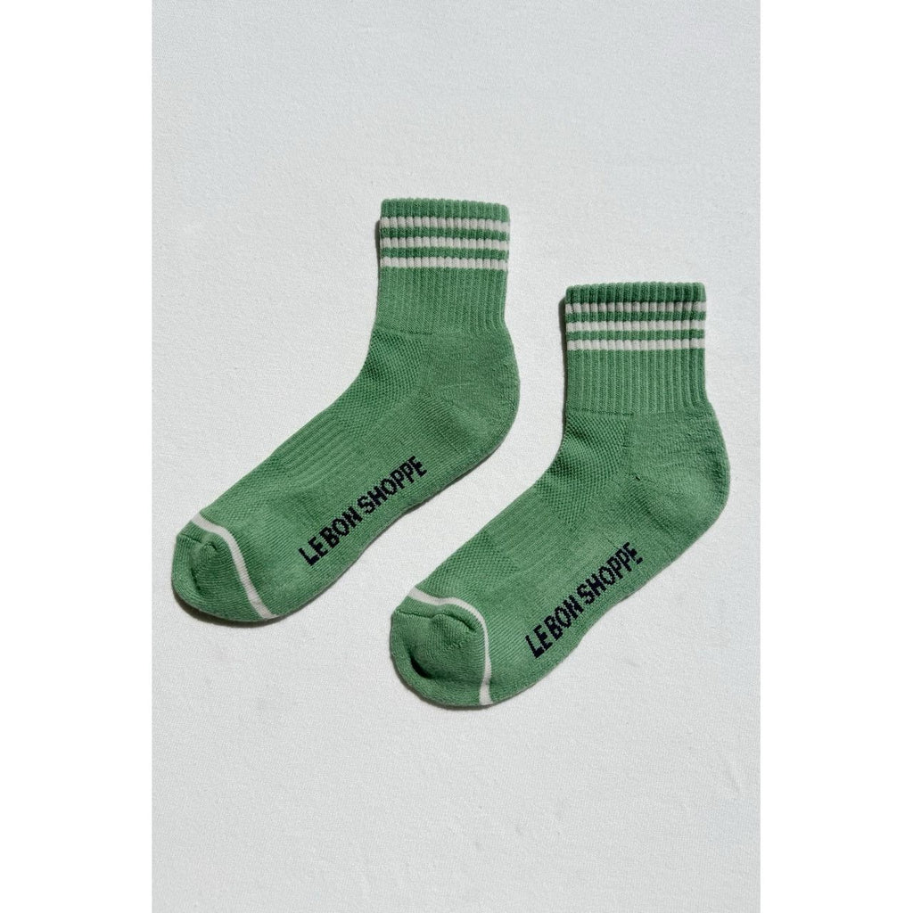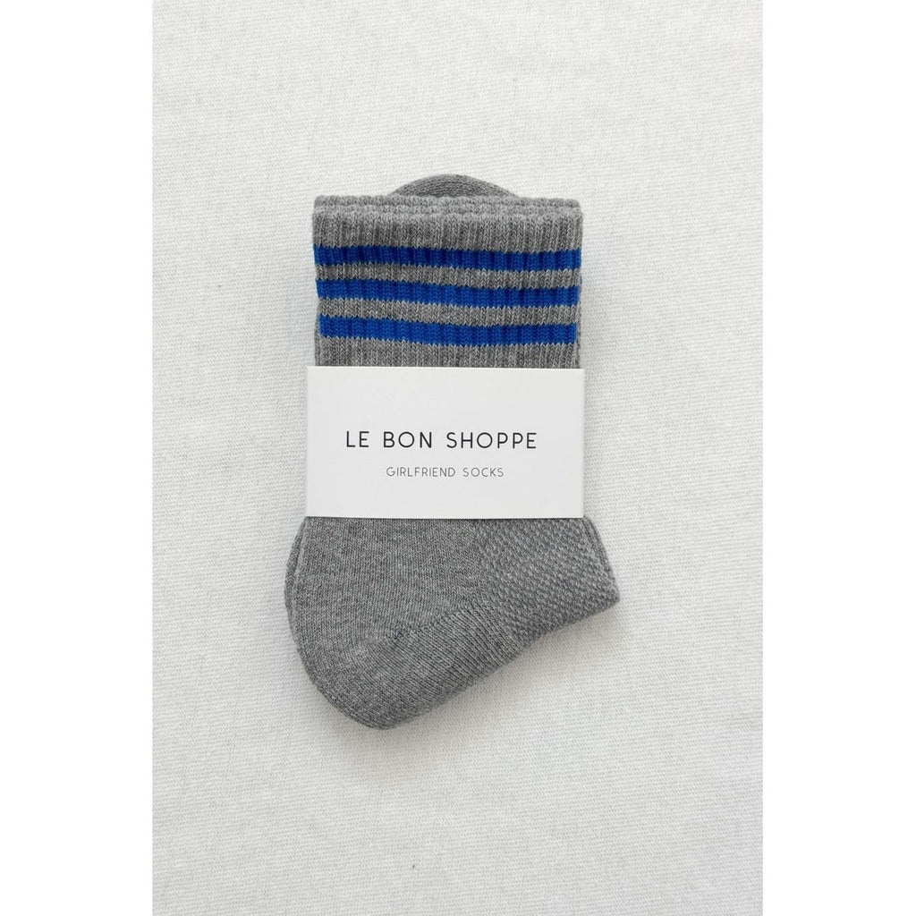 The Girlfriend Socks is the cool crew version of Le Bon Shoppe's original bestseller and classic Boyfriend Socks. These beauties feature a triple contrast stripe at the opening and a shorter classic crew sock length. She is a universally quintessential sock and especially flattering for our petite ladies.